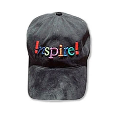 This black heavy brushed cotton low profile cap comes in one size that is suitable for most adults. It features a black suede peak and leather back strap for a secure and comfortable fit. The colorful Inspire! logo is embroidered on the front in a puffed style and the Secretan web address is embroidered in red on the back.