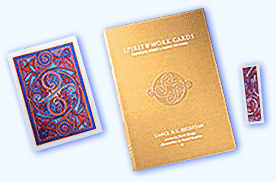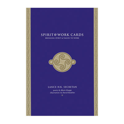 Spirit@Work® Cards is a boxed set including a book and two sets of 77 illustrated cards containing key words and phrases that inspire Higher Ground Leaders. Their purpose is to help you invite spirit into your work and life. There are two sets of cards — one for regular use, and a much smaller set for traveling. Each card is decorated with a unique design by David Rankine, featuring a different word and art for every card. The complementary, velvet-covered book contains companion text for each card, and a verse by Marie Knapp.